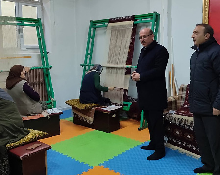 İsa Koç, Kelkit Halk Eğitim Merkezi Müdürü Ö. Yıldıray Meral ile birlikte beldede faaliyet gösteren üretim kurslarını ziyaret etti. Merkez Camii alt katında hizmet veren kurs merkezlerinde 10 kadın kursiyer hem meslek öğreniyor hem de üretim yaparak aile ekonomilerine katkı sağlıyor.