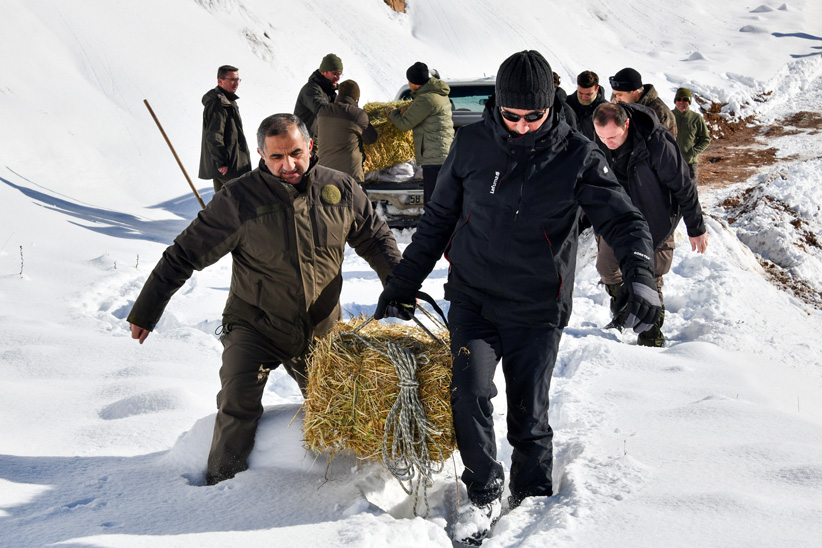 Vali Baruş, ekiplerle birlikte karlı arazide ot ve buğday çuvallarını taşıyarak, başta yaban keçileri olmak üzere yaban hayvanlarının güvenle beslenebileceği noktalara yem bıraktı. Yemleme faaliyeti, yaban hayvanlarının doğal yaşam alanlarında ve kolay erişebilecekleri bölgelerde gerçekleştirildi.