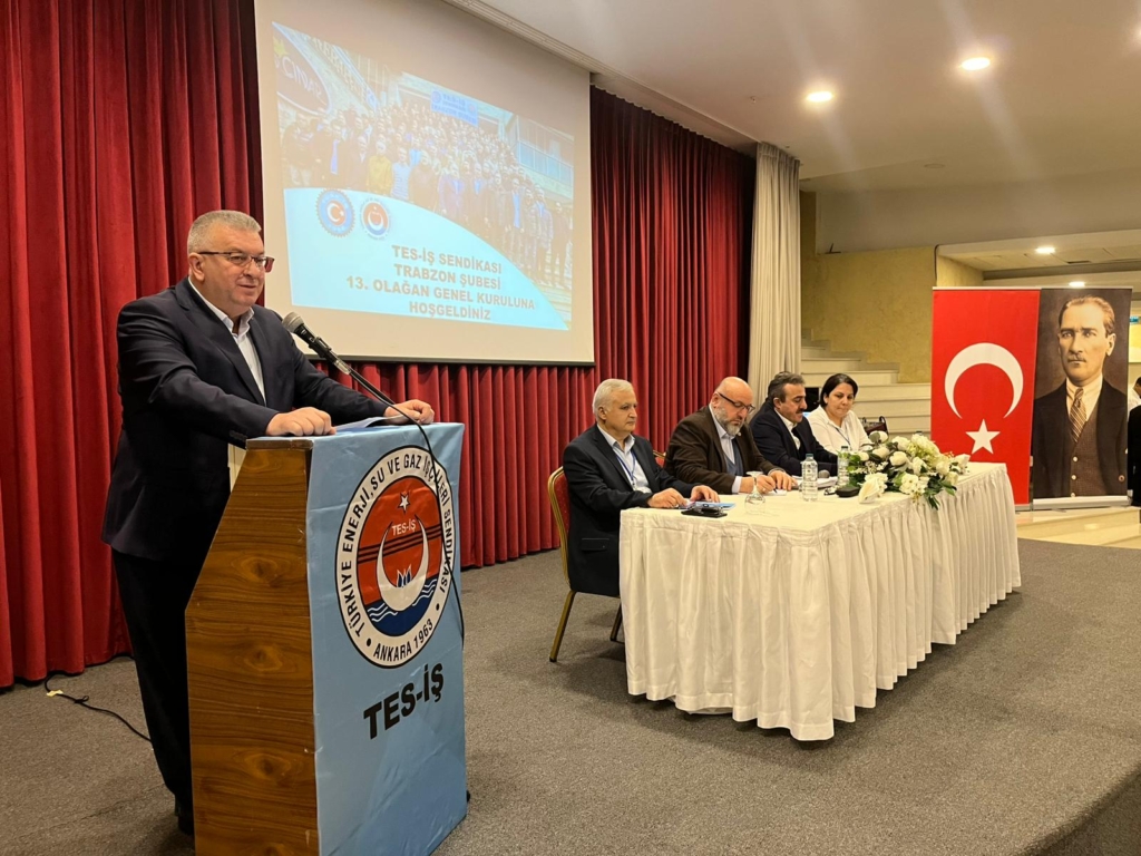 TES-İŞ Sendikası Trabzon Şubesi’nin 13.Olağan Genel Kurulu Trabzon Pelitlideki Anemon Otel salonunda yapıldı. Genel Kurula TÜRK-İŞ Konfederasyonu Genel Başkan Yardımcısı ve TES-İŞ Sendikası Genel Başkanı İrfan KABALOĞLU, TES-İŞ Sendikası Genel Başkan Yardımcıları, ÇORUH EDAŞ Şirket Müdürü Mehmet AYDIN, AKSA Karadeniz Doğalgaz Bölge Müdürü Mehmet Salih AYAYDIN, KAMUSEN Trabzon İl Başkanı Coşkun DİLBER, Enerji Bir-Sen Trabzon Şube Başkanı Erkan Uzun, TEİAŞ 14. Bölge Müdür Yardımcısı Engin BULUT, ÇORUH EDAŞ Trabzon İl Müdürü Anıl ŞAHİNER, Yol-iş sendikası Trabzon 1 no.lu Şube Başkanı Ali FAİZ ve Yönetimi, Türk-İş Rize İl Başkanı ve Yol-iş Sendikası Trabzon 2 No.lu Şube Başkanı Harun ERDOĞAN, KOOP-İŞ Sendikası Trabzon Şube Başkanı Fikri Öksüz, TİSKİ Yönetim Kurulu Üyesi Farabi HACIHASANOĞLU, TES-İŞ Sendikasının Şube Başkanları ve Yöneticileri, ilimizdeki bazı Kurumların Yöneticileri, misafirler ve delegeler katıldı.