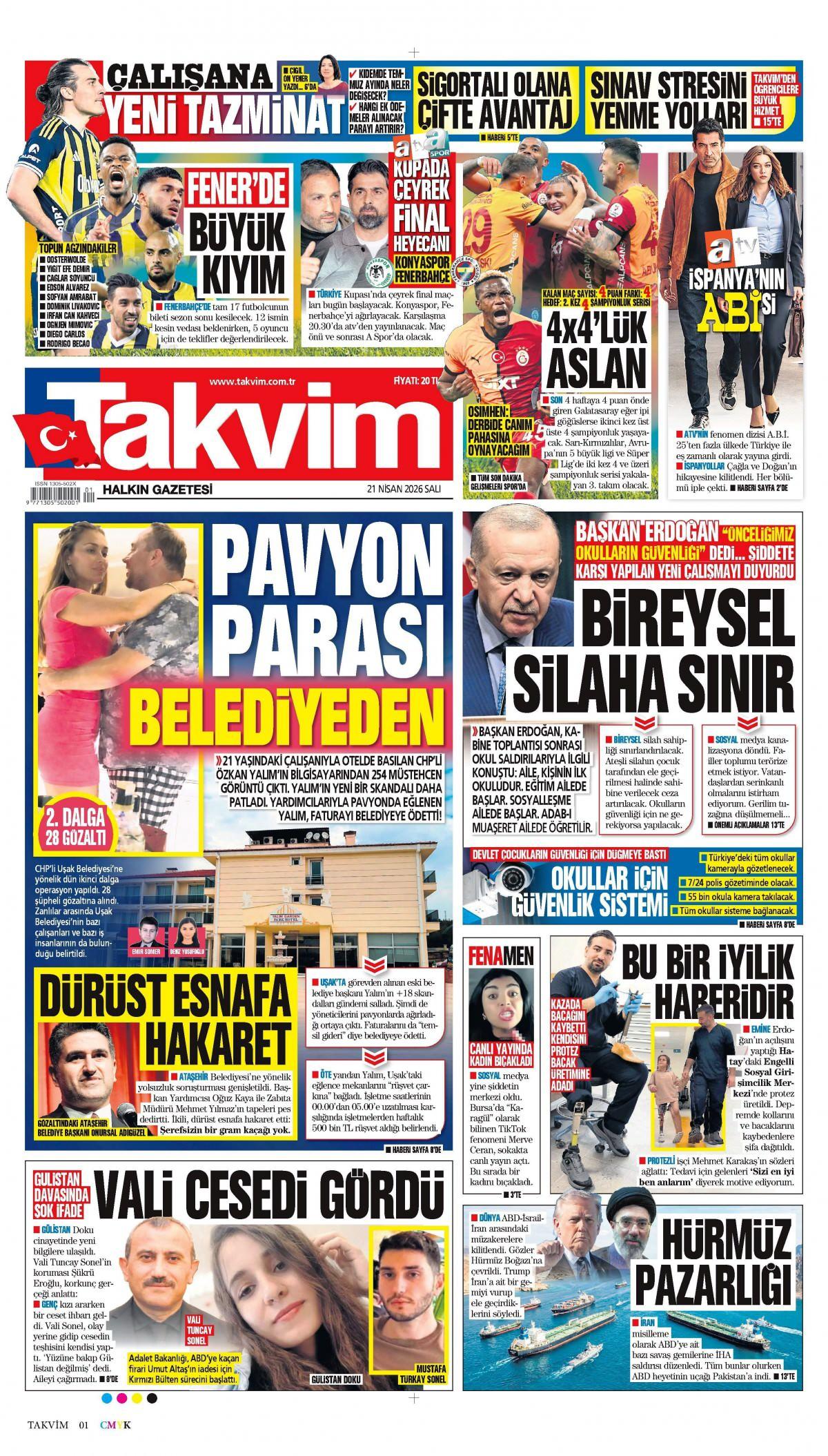 Takvim Gazetesi 21 Nisan 2026 Günü Manşeti
