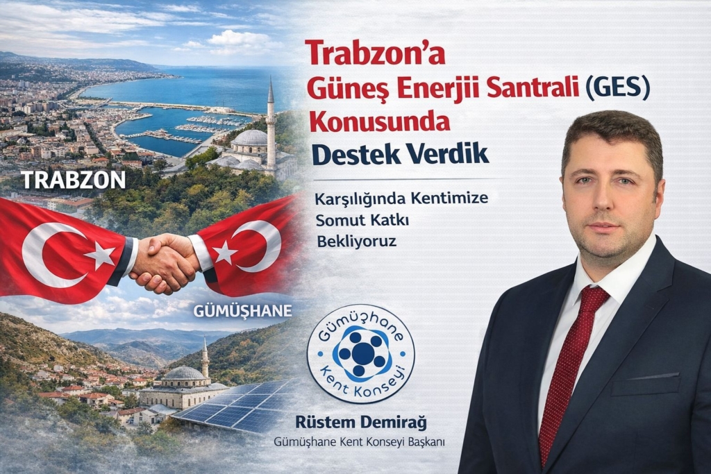 Gümüşhane Kent Konseyi Başkanı Rüstem Demirağ, Trabzon Büyükşehir Belediyesi’nin Şiran ilçesinde hayata geçireceği Güneş Enerji Santrali (GES) projesine ilişkin değerlendirmelerde bulundu. Demirağ, Gümüşhane İl Genel Meclisi’nin projeye verdiği desteğin bölgesel iş birliği açısından önemli bir adım olduğunu vurguladı.