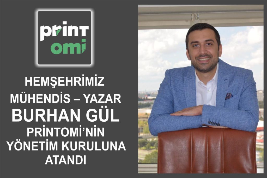 Gümüşhane’nin yetiştirdiği mühendis-yazar Burhan Gül, mobil çıktı teknolojileri alanında faaliyet gösteren Printomi şirketinin Yönetim Kurulu’na atandı. Gül, bundan sonra şirketin **“Küresel Strateji ve Sürdürülebilir Teknoloji”**den sorumlu üyesi olarak görev yapacak.