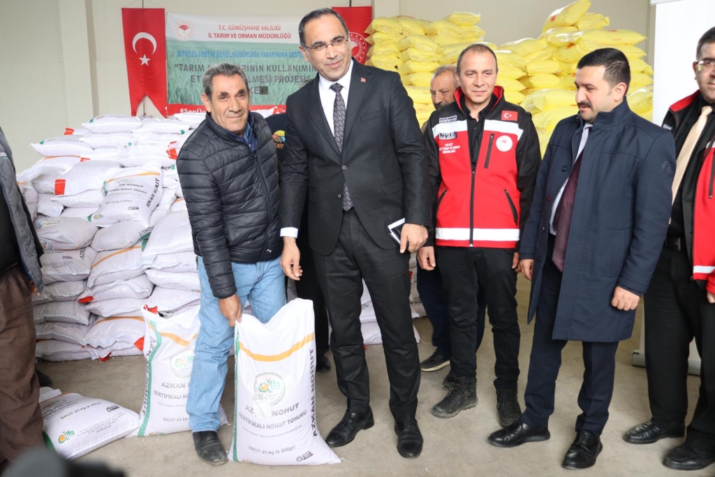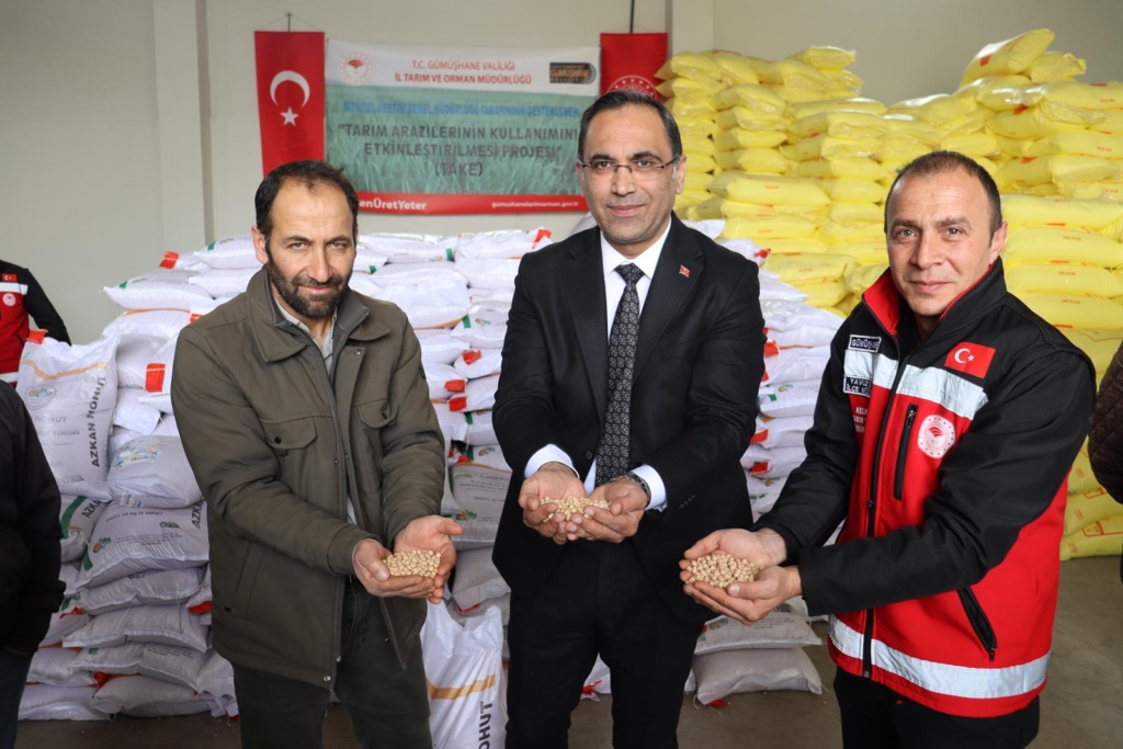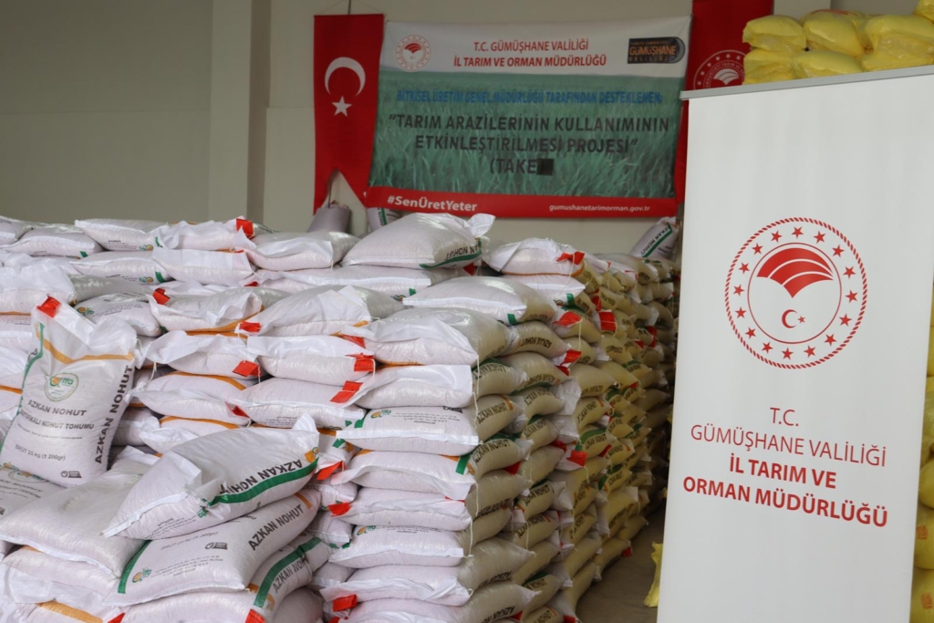 Gümüşhane’de Tarım ve Orman Bakanlığı tarafından finanse edilen Tarım Arazilerinin Kullanımının Etkinleştirilmesi (TAKE) Projesi kapsamında çiftçilere %75 hibeli sertifikalı nohut tohumu desteği sağlandı. Proje çerçevesinde temin edilen toplam 55 bin 550 kilogram nohut tohumu, Kelkit, Şiran ve Köse ilçelerinde üreticilere teslim edilmeye başlandı.