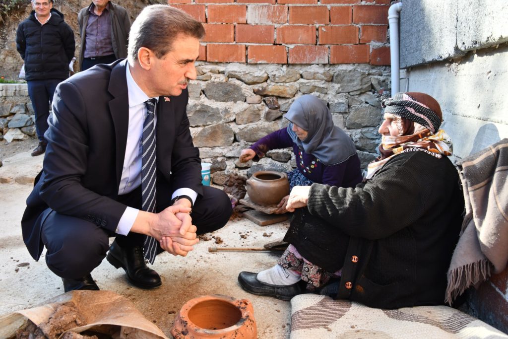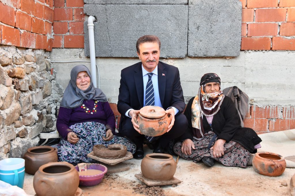 Vali Baruş, ata yadigârı bu geleneği yaşatan ve aile ekonomilerine katkı sağlayan kadın çömlek ustalarıyla tek tek sohbet etti.