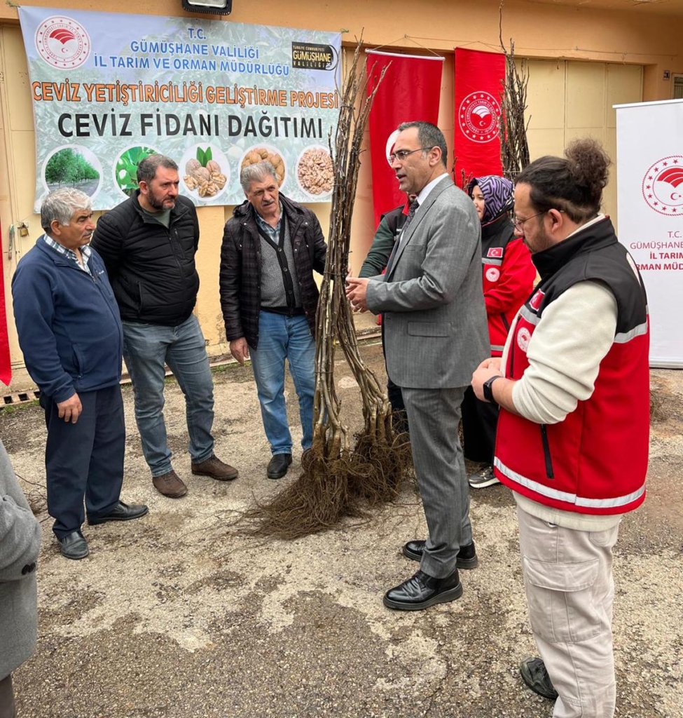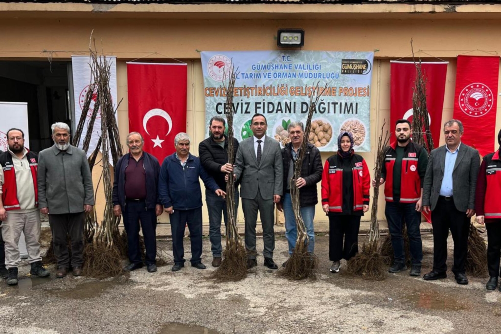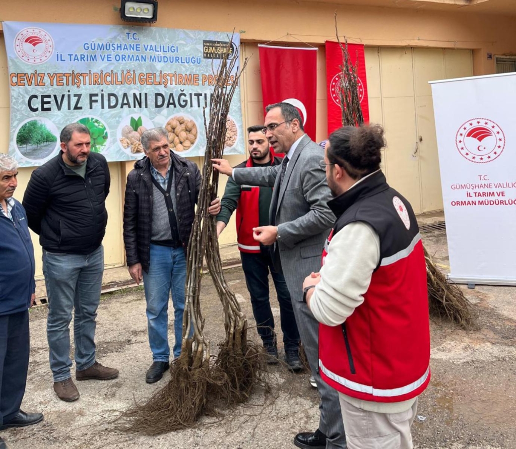 Gümüşhane’de tarımsal üretimin artırılması ve ceviz yetiştiriciliğinin yaygınlaştırılması amacıyla hayata geçirilen “Ceviz Yetiştiriciliğini Geliştirme Projesi” kapsamında üreticilere yüzde 50 hibeli ceviz fidanı dağıtımı gerçekleştirildi.