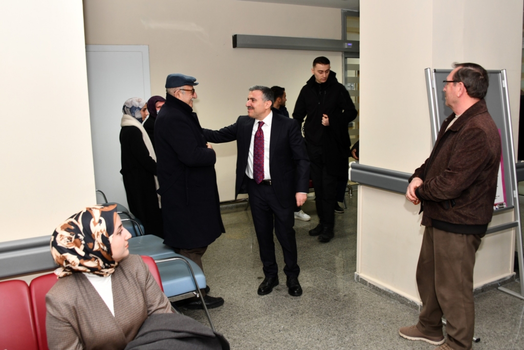 Vali Atay, Vali Yardımcısı Dr. Serhat Doğan ve İl Sağlık Müdürü Dr. Necip Yemenici ile birlikte hastaneyi dolaşarak polikliniklerde tedavi gören vatandaşlarla bir araya geldi. Vatandaşlarla sohbet eden Atay, geçmiş olsun dileklerini iletip sorunlarını dinledi.