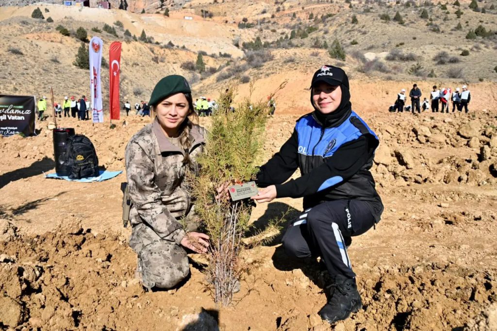 Sarı çam fidanlarının toprakla buluşturulduğu program, hem çevre bilincini artırdı hem de milli birlik ruhunu güçlendirdi.